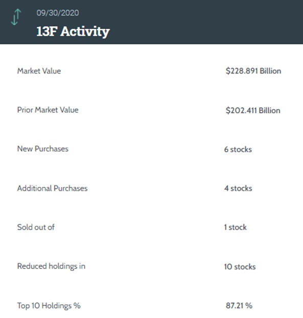 智通财经APP获悉,根据美国证券交易委员会(SEC)披露,日前巴菲特旗下的伯克希尔哈撒韦(BRK.A.US)递交了截至2020年9月30日的三季度持仓报告。