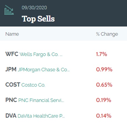 前五大卖出标的分别是:富国银行、摩根大通、好市多、PNC金融和DaVita Inc.。