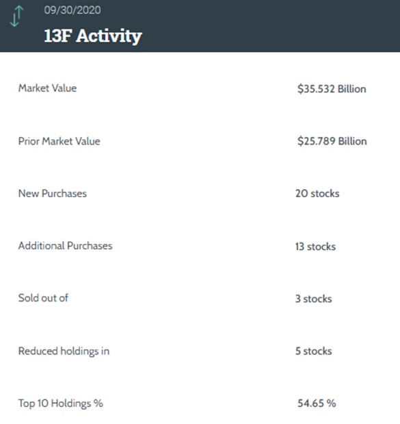 智通财经APP获悉,根据美国证券交易委员会(SEC)披露,日前老虎环球基金递交了截至2020年9月30日的三季度持仓报告。
