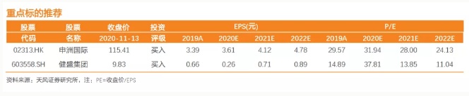 持续关注海外有产能布局,并以出口为主的优质制造龙头标的申洲国际(02313)、健盛集团。