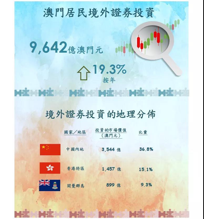 按地区划分,亚洲仍占澳门居民境外证券投资的最大比重,达57.7%,其余则主要分布在北大西洋和加勒比海(18.9%)、欧洲(10.5%)、北美洲(9.8%)及大洋洲(1.9%)等地。