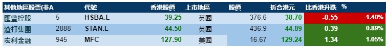 大型蓝筹涨跌不一,汇丰控股收报38.62港元,较港收市跌1.59%;腾讯控股收报581.62港元,较港收市涨0.02%。