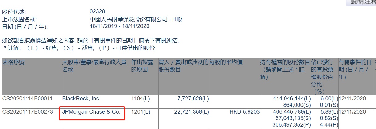 智通财经APP获悉,香港联交所最新资料显示,11月12日,小摩减持中国财险(02328)2272.1358万股,每股作价5.9203港元。总金额约为1.35亿港元,减持后最新持股数目约为4.06亿股,最新持股比例为5.89%。