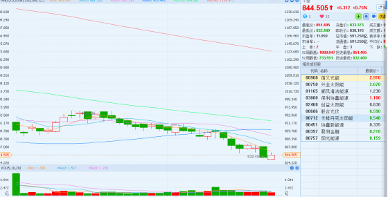 从盘面上看,光伏太阳能板块较为活跃,10只股票的市值虽然都不算大(板块总市值约600亿),但每日成交量均超过了1亿股。板块的整体稳定性较好——恒指自4月中旬21500点左右下跌至五月中旬一度低见19600,光伏板块却“岿然不动”,涨跌几乎不受大市影响。