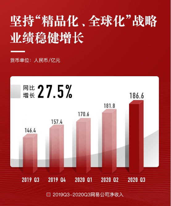 智通财经APP获悉,11月19日,网易公司(09999,NTES.US)发布2020年第三季度财报。财报显示,网易公司第三季度净收入为人民币186.6亿元,同比增长27.5%。归属于公司股东的持续经营净利润为人民币30.0亿元;非公认会计准则下,归属于公司股东的持续经营净利润为人民币36.7亿元。