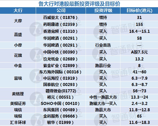 友邦(01299)最新评级及目标价汇总(表) 券商料第三季新业务价值中位数7亿美元