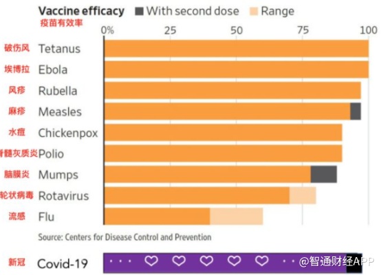 据智通财经APP了解,横向对比来看,在全球范围内的多种开发程度较为成熟的疫苗品类中,即使包括水痘、髓灰质炎、脑膜炎等适应症的疫苗,其有效率都仅在90%及以下。而目前市场上针对普通流感的疫苗有效性也仅在60-70%左右。
