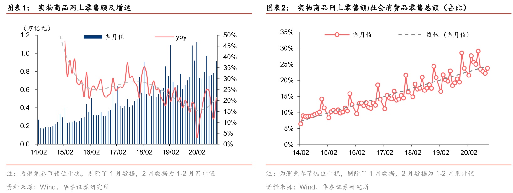 据统计局数据,10月全国社零总额同比增长4.3%(9月:增长3.3%);我们测算实物商品网上零售额同比增长21.4%(9月:增长11.7%),增速环比上升9.7pct,占社零总额的23.7%(9月:22.2%)。考虑统计口径以外电商的增长,我们预计20/21/22年中国电商GMV同比增长23.8%/20.5%/15.9%,占社零总额的27.6%/30.8%/33.2%。