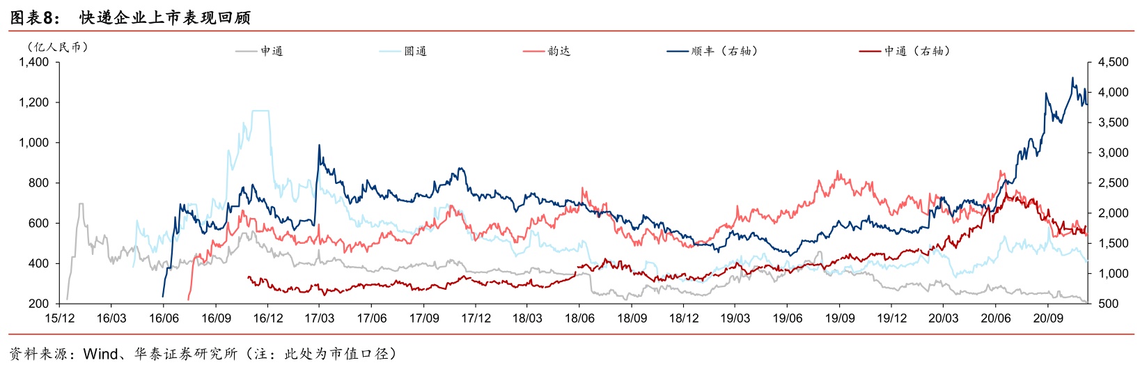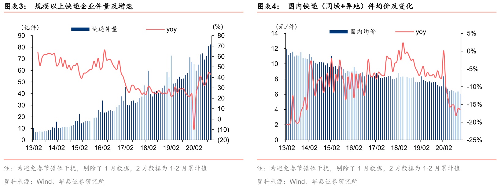 2020年,卫生事件催化快递件量高速增长,但市场分化加剧:1)加盟制快递专注标准电商件市场,激烈的竞争致盈利承压;2)直营快递聚焦细分特色市场,盈利状况良好。邮政局预计11月件量同比+36%,仍处于较高增速区间。考虑极兔、丰网、众邮等新进入者,我们预计低端电商件竞争仍然激烈;建议关注行业竞争格局变化,综合供应链服务和跨境电商物流等新业务亦是可行的突破方向。