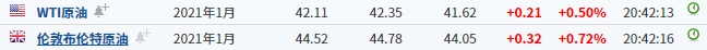 截至发稿,WTI原油涨0.50%,报42.11美元/桶。布伦特原油涨0.72%,报44.52美元/桶。