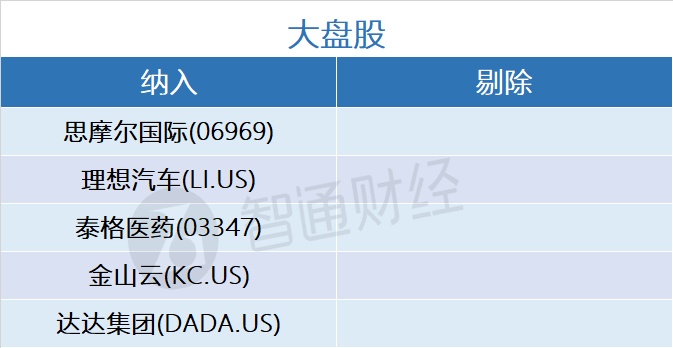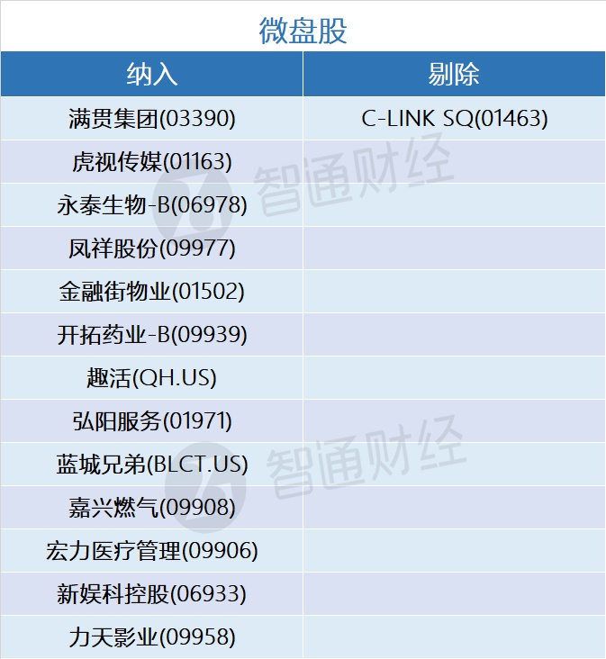 小盘股新纳入康方生物-B(09926)、移卡(09923)、祖龙娱乐(09990)3只港股;