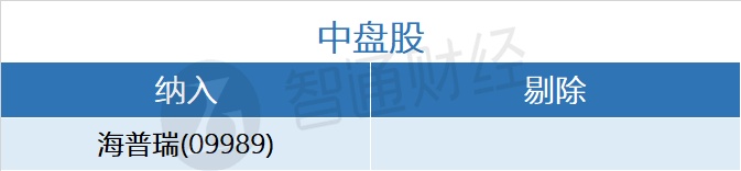 中盘股新纳入海普瑞(09989)一只港股;