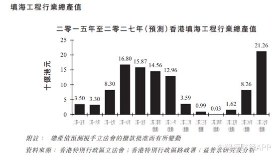 不过也不难看出,在香港该行业因为规模不大,因此受单个项目的影响十分明显,根据预测,随着2018年的项目逐渐完工,行业规模从2019年开始再次下滑,在没有新项目出现之前,2023年填海行业的总产值甚至下降至10亿港元。