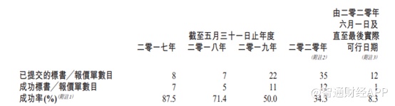 2017财年至2020财年(截至5月31日),公司提交标书/报价单数目分别为8个、7个、22个和35个,中标项目分别为7个、5个、11个和12个,中标率分别为87.5%、71.4%、50%和34.3%。
