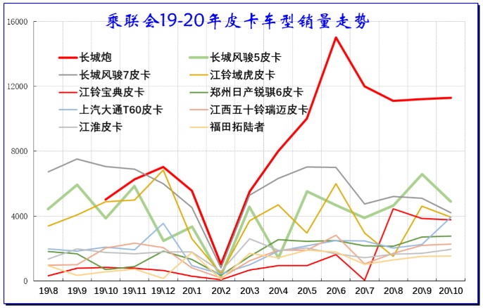 今年卫生事件影响,2-4月份还具有延迟购买的需求,所以5-10月皮卡车表现较强。