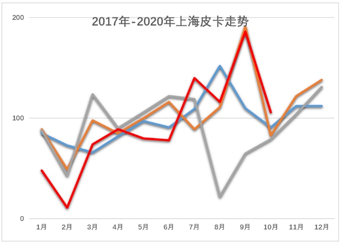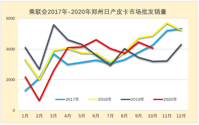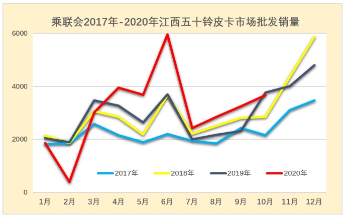 2020年皮卡批发市场走势相对起步较低,相对于2018年和2019年的10月表现异常走强,这也是2020年卫生事件的因素的干扰。