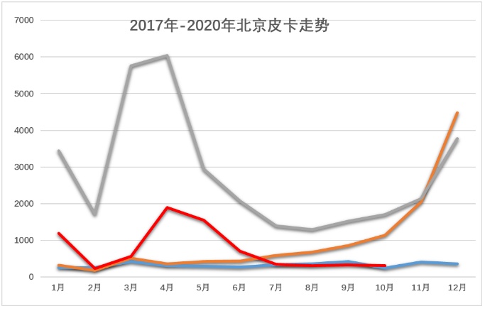 但华北地区,东北地区,等传统的国企为主的地方,行政命令力度相对较强,封闭严重,北京限行导致皮卡市场进入冰封状态。