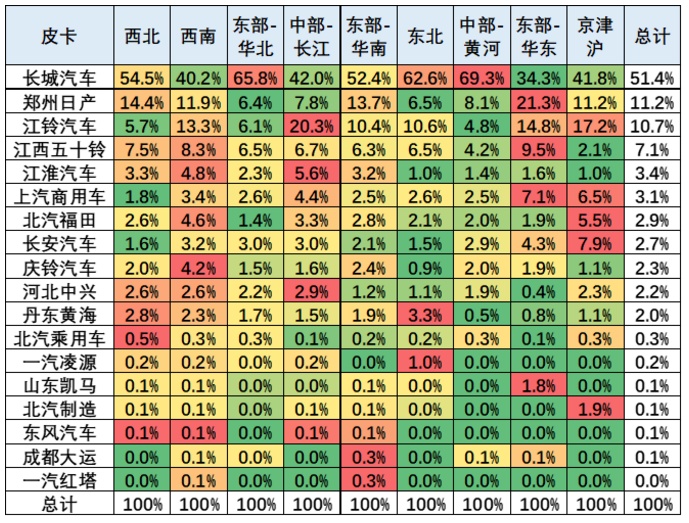 五、中国皮卡市场区域结构分析