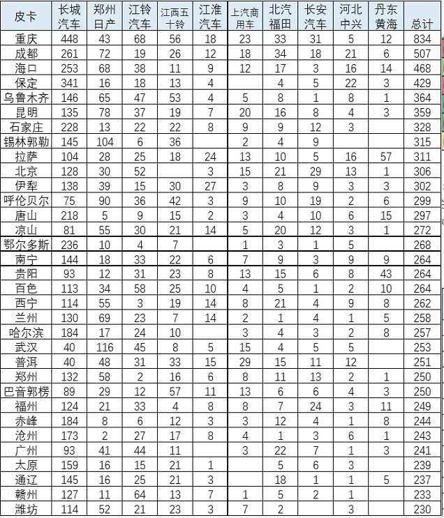 3、主力城市的皮卡表现