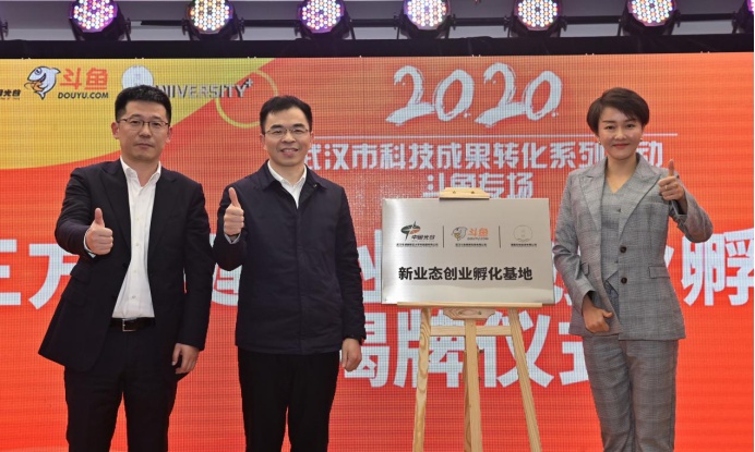 同时,斗鱼还与武汉东湖高新区大学科技园有限公司、武汉海聚科技投资有限公司进行了三方共建新业态创业孵化基地的揭牌仪式。该基地旨在为技术开发创业团队提供办公场地、办公条件以及相应技能培训支持。未来,斗鱼将派出直播领域资深技术专家定期对企业进行辅导。