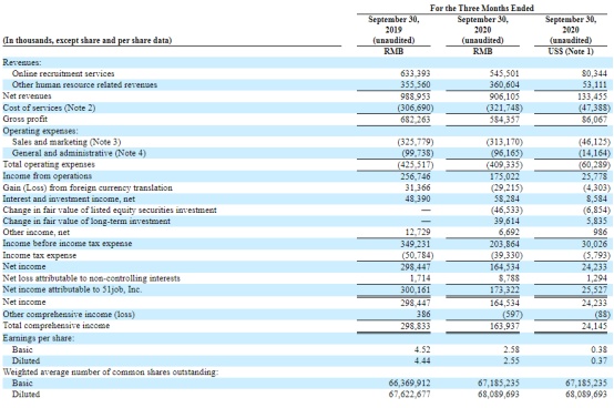 11月20日,前程无忧发布了2020年第三季度未经审计财报。报告显示,前程无忧第三季度实现净营收为9.06亿元,较去年同期下降8.4%;实现净利润1.733亿元,较去年同期降幅超过了40%。
