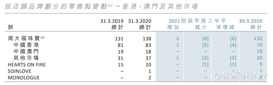 而港澳及其他地区则合计净减少10家门店,其中包括香港尖沙咀及铜锣湾客区的5家及日韩地区的2家。