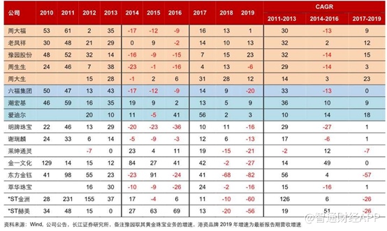 从主要黄金珠宝企业过去10年的扩张节奏与形式来看,可以大致分为三个阶段:集体繁荣、波折调整、开启分化。