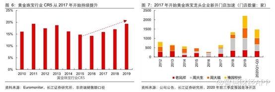 由于珠宝行业受损于公共卫生事件,所以待疫苗推出之后,珠宝行业将迎来复苏,而行业龙头企业在公共卫生事件期间内逆势扩张,推动行业集中度提升。