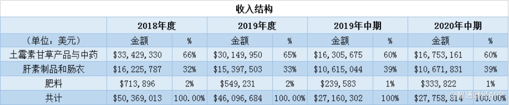 具体来看,2019年度,祁连国际土霉素产品和甘草制品同比减少330万美元,肝素产品和肠衣销售额同比减少了80万美元,主打产品总销量均下滑,导致了公司全年收入的下降。