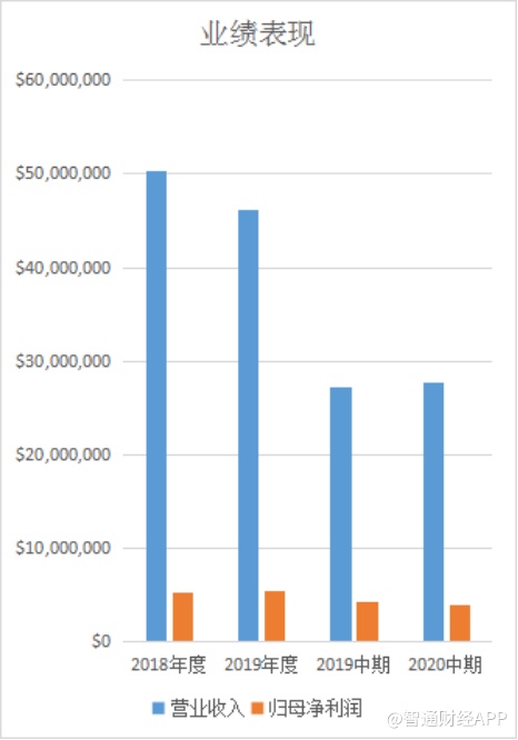 据智通财经APP了解到,截至2019年度,公司营业收入出现同比下滑8%,达到4609.67万美元;而归母净利润却实现了同比增长3%,至533.23万美元。而截至2020年中期,公司营业收入有所回升2%至2775.89万美元;但归母净利润却同比下滑了10%至385.81万美元。