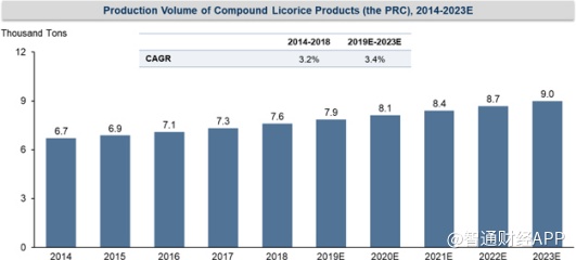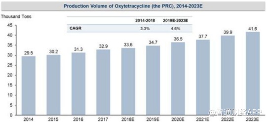 根据弗若斯特沙利文预计,我国土霉素产量于2014年-2018年的复合年增长率为3.3%,2019年-2023年将微幅增长至4.6%;预计复方甘草产品产量复合年增长率则将由2014年-2018年的3.2%微幅增长至2019年-2023年的3.4%。对于肝素市场的预测则仅提到将保持稳定增长,没有具体数字。总体而言,未来市场增长前景趋缓。
