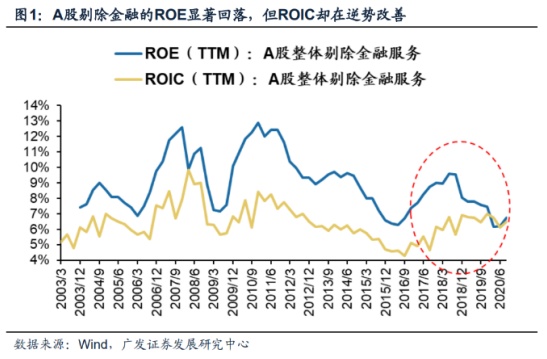(1)2018年以来A股上市公司的ROE显著回落但ROIC却震荡上行。