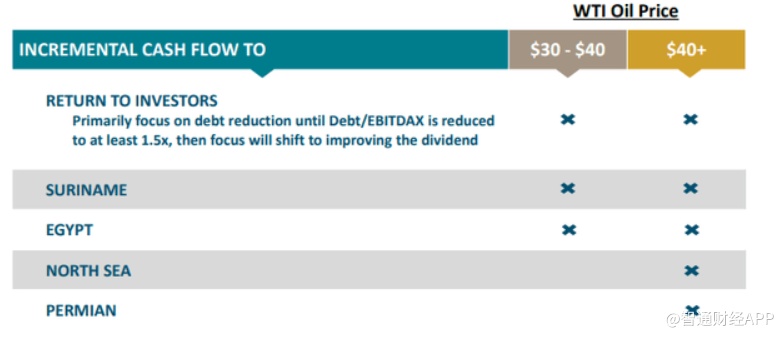 当WTI原油价格为30-40美元时,该公司优先发展位于苏里南和埃及的项目,而当价格在40美元以上时,北海和二叠河盆地的项目则更具吸引力。这与公司在这些地区的资产质量和盈亏平衡价格有关。