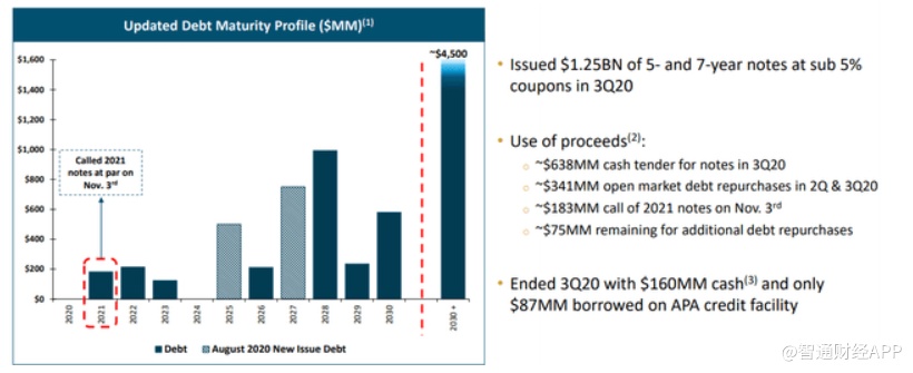 阿帕奇公司计划专注于债务削减,直到债务/ EBITDX降至至少1.5倍,根据2020年第三季度的数据,这意味着将减少40 - 50亿美元的债务。然而,分析师表示,第三季度的数据反映的是困难时期的业绩,预计随着油价的改善,该公司需要偿还的债务将会减少。