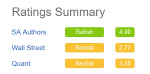 更有趣的是,部分投资者对该股的预期发生了重大转变:由2019年8月几乎一致的看跌,转变为如今充满了对该公司美好未来的憧憬。如下图所示,在Seeking Alpha上,看涨该股的作者对该股的评级明显已经比华尔街分析师更为乐观。
