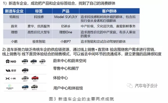 我觉得做对的地方,最主要是两个,通过定位找到了对应的细分购买群体,通过差异化的购买渠道让转化率提高,传统企业不管是国内外的品牌,都是依托于原有的4S店体系,这套对于燃油车这样成熟产品效用很大,但是对于新能源汽车这样需要高素质的销售和服务人员的产品,很难等同对待。