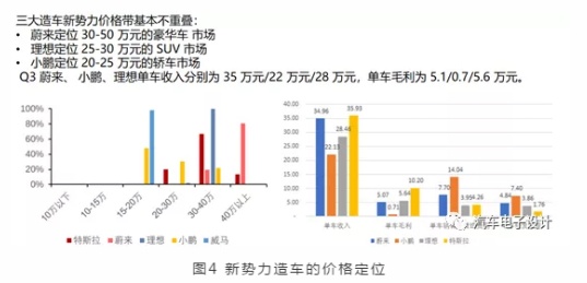 所以这也使得美股市值拉起来的三个企业形成了三个价格梯度,在价格区间里面,其实小鹏(XPEV.US)是承压最大的;蔚来(NIO.US)和特斯拉(TSLA.US)拉的最开,理想(LI.US)的打法最为特殊。