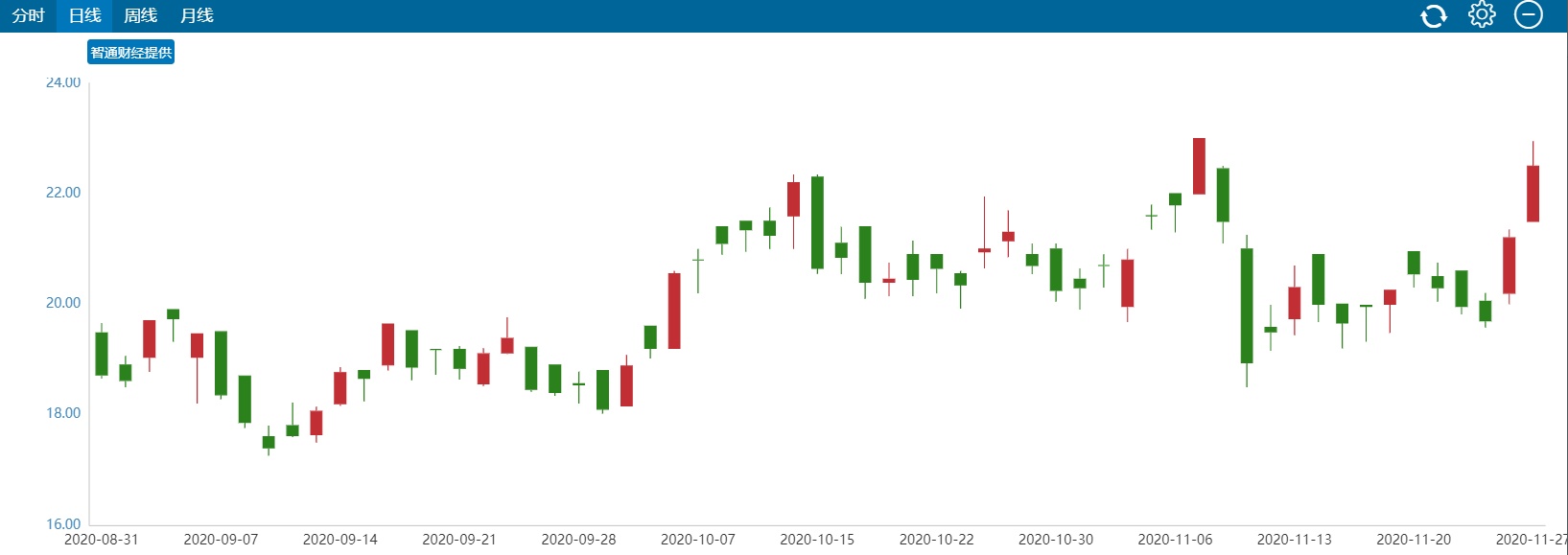 而受扭亏为盈的中期报提振,阿里健康股价这两天一路飘红——11月26日,该股票大涨7.61%,报于21.2港元;而后又延续昨日涨势,于27日继续飙涨,截止收盘其股价上涨6.13%,报于22.5港元,总市值为3027亿港元。
