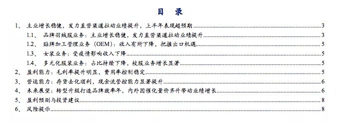 风险提示:天气升温影响羽绒服终端销售;卫生事件二次爆发影响线下复苏等。