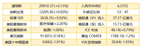1. 上周五美股截至收盘,道指涨37.90点或0.13%,报29910.37点;纳指涨111.44点或0.92%,报12205.85点;标普500指数涨8.70点或0.24%,报3638.35点。感恩节过后,黑色星期五为美国重要的假期购物拉开序幕,投资者将以电商和行动数据等指标作为衡量消费者信心的依据。上周五美股提前休市,港股ADR指数微涨,按比例计算,收报26956点,涨61.92点或0.23%。