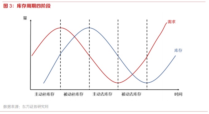 库存周期又称基钦周期,与朱格拉周期(投资周期)以及库兹涅茨周期(建筑业周期)等中长周期不同,库存周期为典型的短周期经济波动规律。库存周期的基本驱动是工业企业产成品库存或存货随经济预期变化带来的波动。当经济预期向好、产成品库存水平较低时,工业企业通常将主动补库存来应对未来更为旺盛的需求,从而拉动其上游原料或中游半成品的短期需求,驱动原料价格上涨。