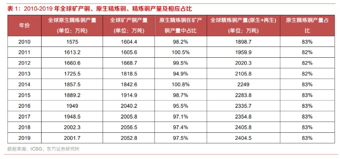 2.1 原生铜与再生铜:以矿产铜为原料的再生铜产量占比达83%