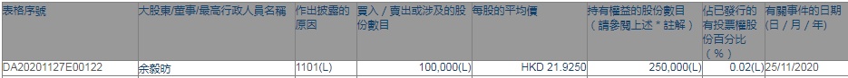 智通财经APP获悉,香港联交所最新资料显示,11月25日,执行董事余毅昉增持维达国际(03331)10万股,每股作价21.9250港元,总金额约为219.25万港元。增持后最新持股数目约为25万股,最新持股比例为0.02%。
