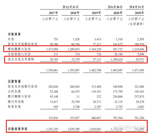 开拓新客户,尤其是第三方客户,必然要有充足现金流打底,不过从最新数据看,现金情况也比较紧张。截至2020年6月30日,公司拥有现金流13.88亿元,但是仅仅两个月之后,截至8月31日,现金流仅剩6597万元,相对的,应收关联方款项从3.87亿增至12.18亿元,流动资产净值也从11.7亿降至7.12亿。