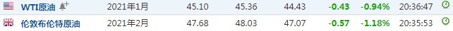 截至发稿,WTI原油跌0.94%,报45.10美元/桶。布伦特原油跌1.18%,报47.68美元/桶。