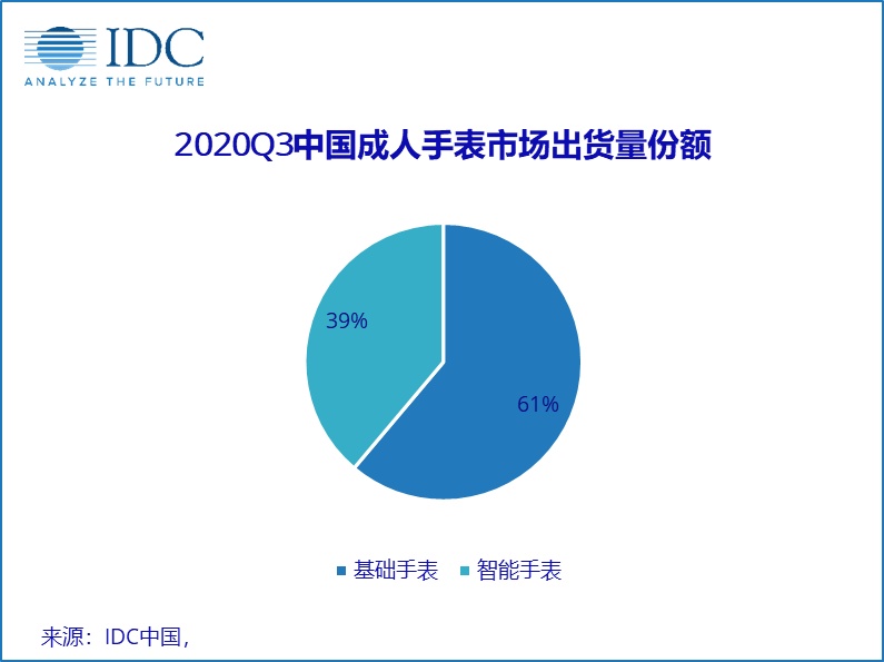2020年第三季度,成人手表市场出货量450万台,同比增长76.8%,创下近一年来增速新高。其中基础手表在华为的带领下,众多厂商积极跟进,共同促进其市场出货量增速达到138.8%;智能手表市场在Apple Watch的新品带动下恢复增长,同比实现25.5%的增速。