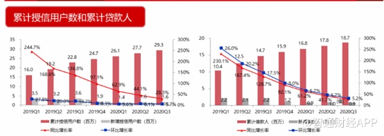 之所以上调全年目标,主要基于公司的授信用户数量提升,借款业务规模持续扩大。截至2020年9月30日,360数科累计授信用户2928万人,同比增长28.3%,公司累计为1871万人提供贷款便利,累计借款人数同比增长27%,2020年前三季度公司新增授信用户共计456万,新增借款人280万。