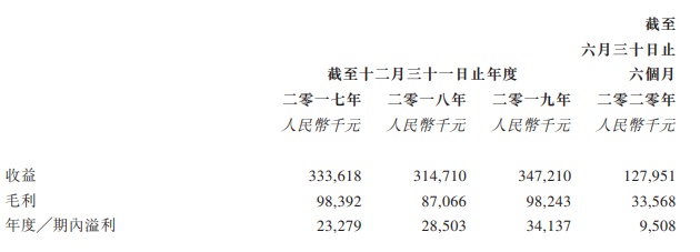 招股书显示,截止2017-2019年度及2020年6月30日止六个月,泰乐玛收益分别为3.34亿元、3.15亿元、3.47亿元及1.28亿元,净利润分别为2327.9万元、2850.3万元、3413.7万元及950.8万元。