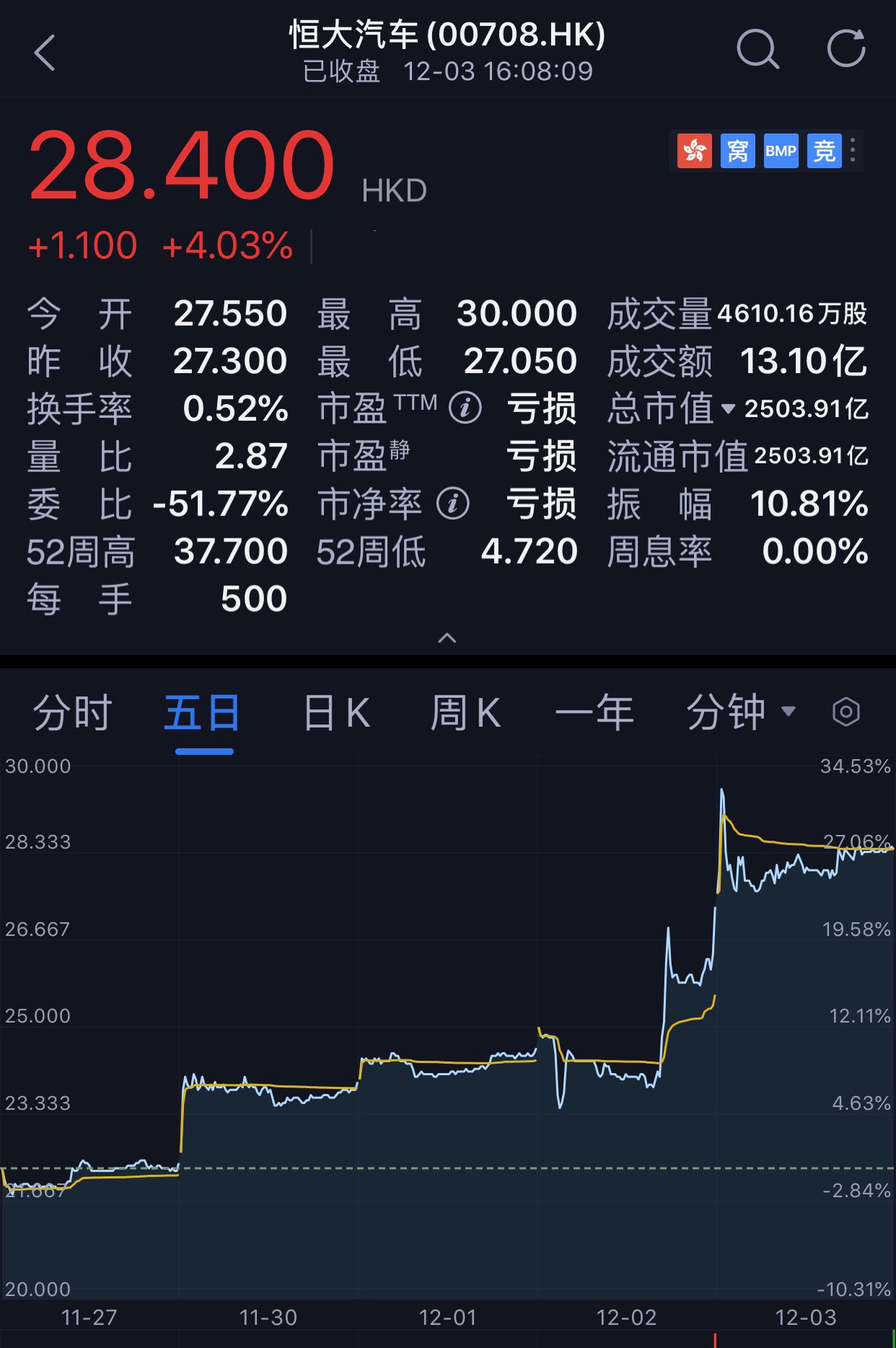 12月2日、3日,恒大汽车(00708)获大股东中国恒大(03333)连续两日大手笔增持。这不仅是为公司进行的资本“投票”,也是为其注入的对未来发展看好的坚定信心。