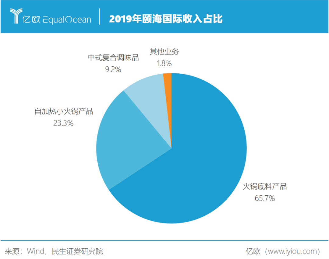 在B端市场,海底捞不断扩张的门店带来了源源不断的订单。数据显示,2019年来自海底捞的销售收入占颐海国际整体火锅底料收入的57%,而颐海国际过半的营收都来源于火锅调味料。